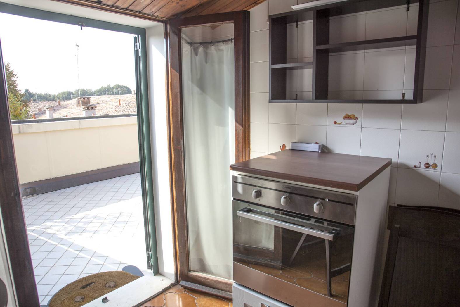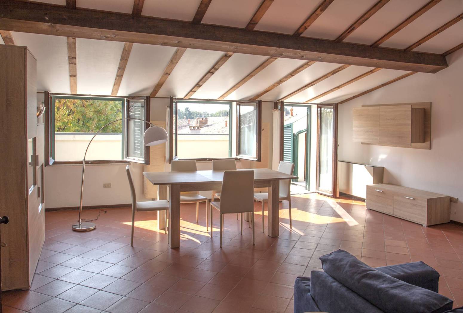 Via XX Settembre, in posizione centrale, appartamento situato in palazzo storico al quarto ed ultimo piano con ascensore, composto da: ingresso, cucina, ampio soggiorno con affaccio su terrazza interna, 3 camere da letto, 3 bagni (di cui due in camera), garage e posto bici in corte interna.